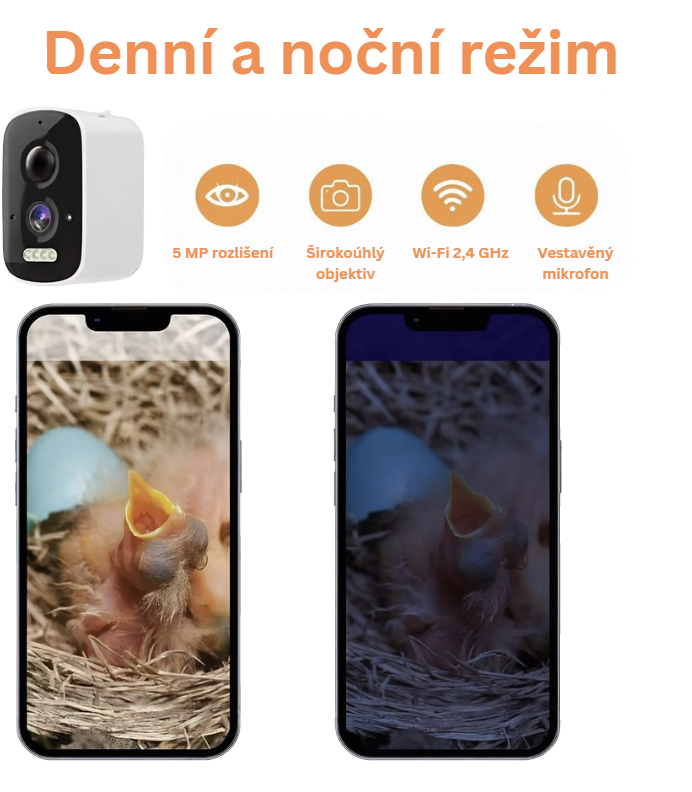 Jasný záběr ptáků s nočním viděním s 5 miliony pixelů.