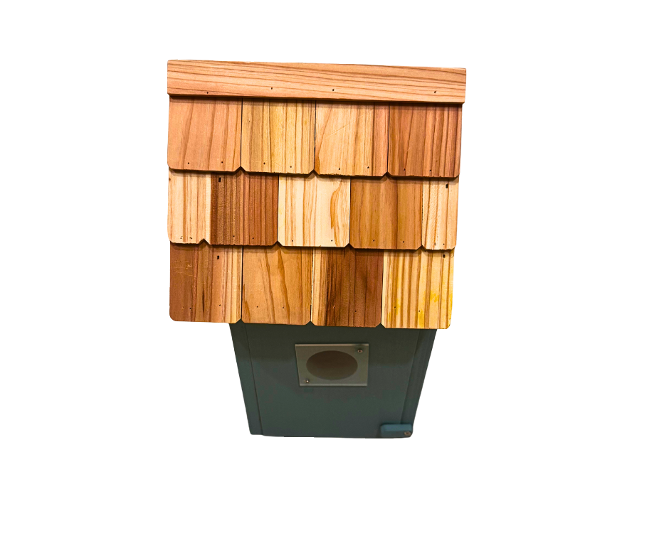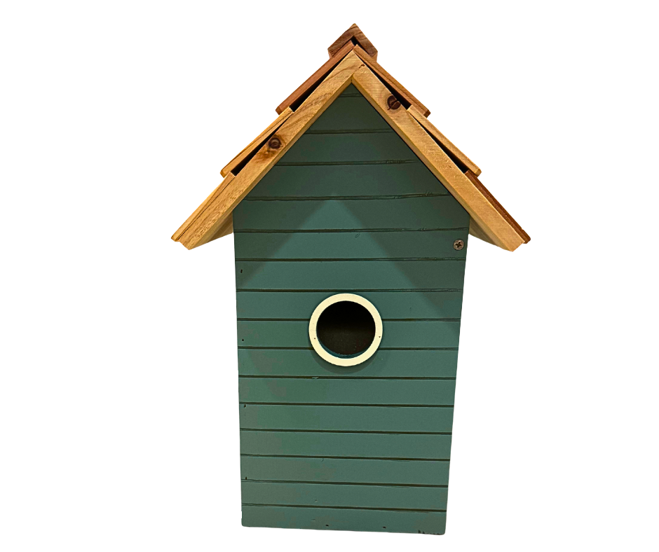 Rustikální střecha, starožitný vzhled a svěží modrý design dělají z této hnízdní budky skutečný poutač pozornosti v každé zahradě nebo venkovním prostoru.